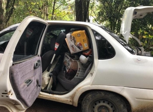 Na fuga, porém, os ladrões tiveram um problema com o carro e não conseguiram seguir viagem. Um GM Corsa Sedan, sem placas, falhou no meio do caminho e foi localizado pela PM com boa parte dos itens furtados dentro. Nas proximidades, os policiais ainda encontraram outros objetos que haviam sido levados pelos bandidos espalhados em terrenos. Os suspeitos fugiram pela região e não foram localizados.
