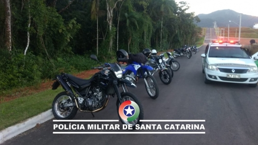 Por volta das 16h15 de domingo, 19, a guarnição foi acionada via telefone 190 para atender uma ocorrência em que havia vários motociclistas realizando manobras em via pública, em loteamento localizado na divisa de Rio dos Cedros e Timbó.